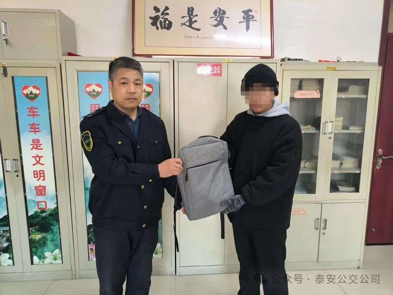 近日,泰山職業(yè)技術學院的齊同學專程來到泰安公交第三分公司,順利領回了自己失而復得的背包。看著背包內(nèi)價值5000余元的筆記本電腦和父母給的200元現(xiàn)金分文未少,齊同學難掩激動,連連對39路公交車駕駛員侯同尚及分公司工作人員的熱心幫助表示感謝。