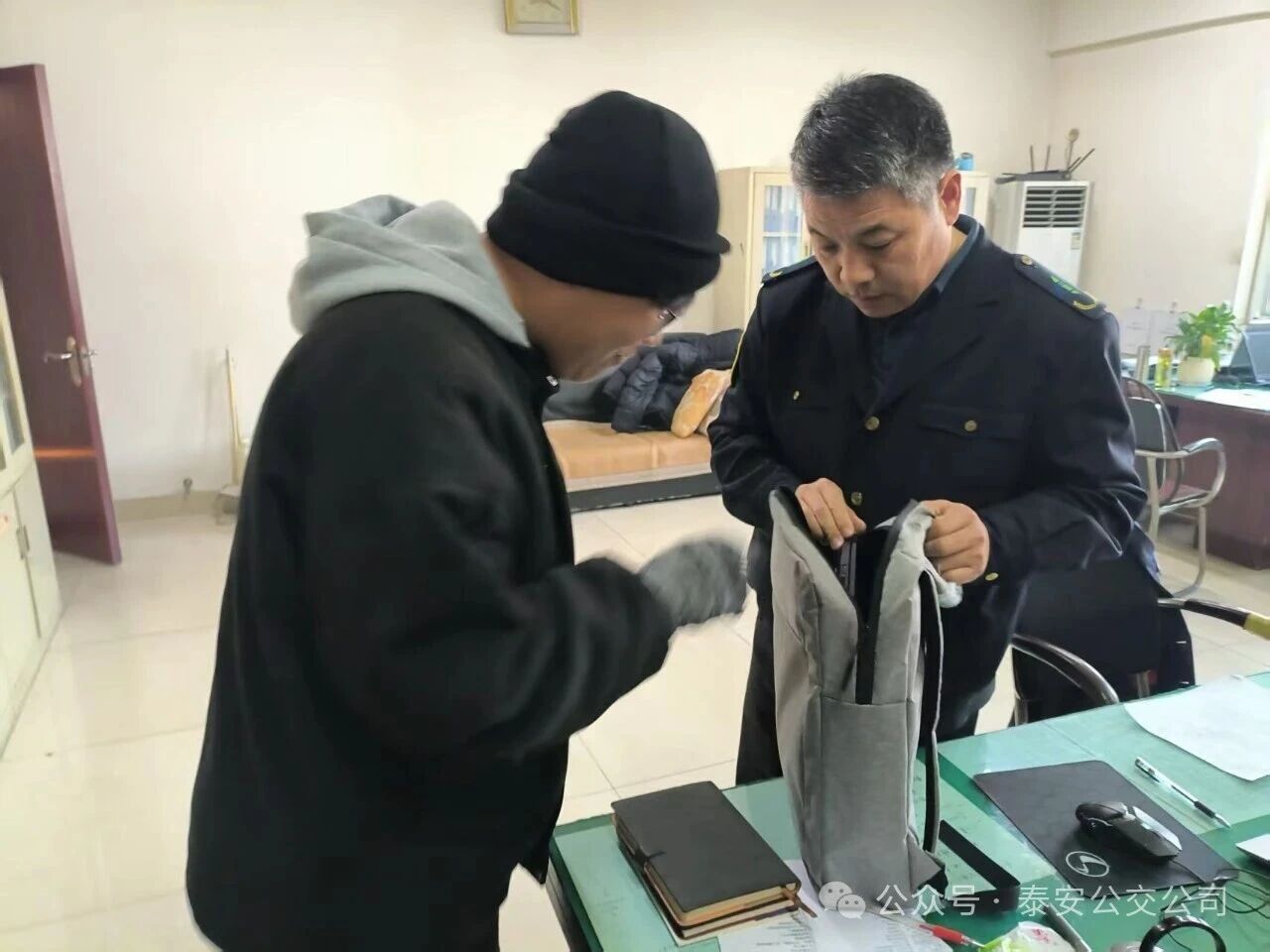 據(jù)了解,齊同學從濟南來泰安上學,當天晚上從泰山火車站乘坐39路公交車前往學校。乘車途中,齊同學因看手機,下車時不慎將裝有筆記本電腦和現(xiàn)金的背包遺落在車廂內(nèi),直到抵達學校后才發(fā)現(xiàn)背包丟失。心急如焚的齊同學立刻返回下車的站點尋找,但公交車早已駛離;他又匆忙趕回乘車的泰山火車站公交樞紐站,依舊沒有看到剛才乘坐的那輛公交車的身影。情急之下,齊同學向樞紐站里的一位公交駕駛員詢問了39路所屬分公司的聯(lián)系電話,隨即撥通電話向分公司工作人員求助。